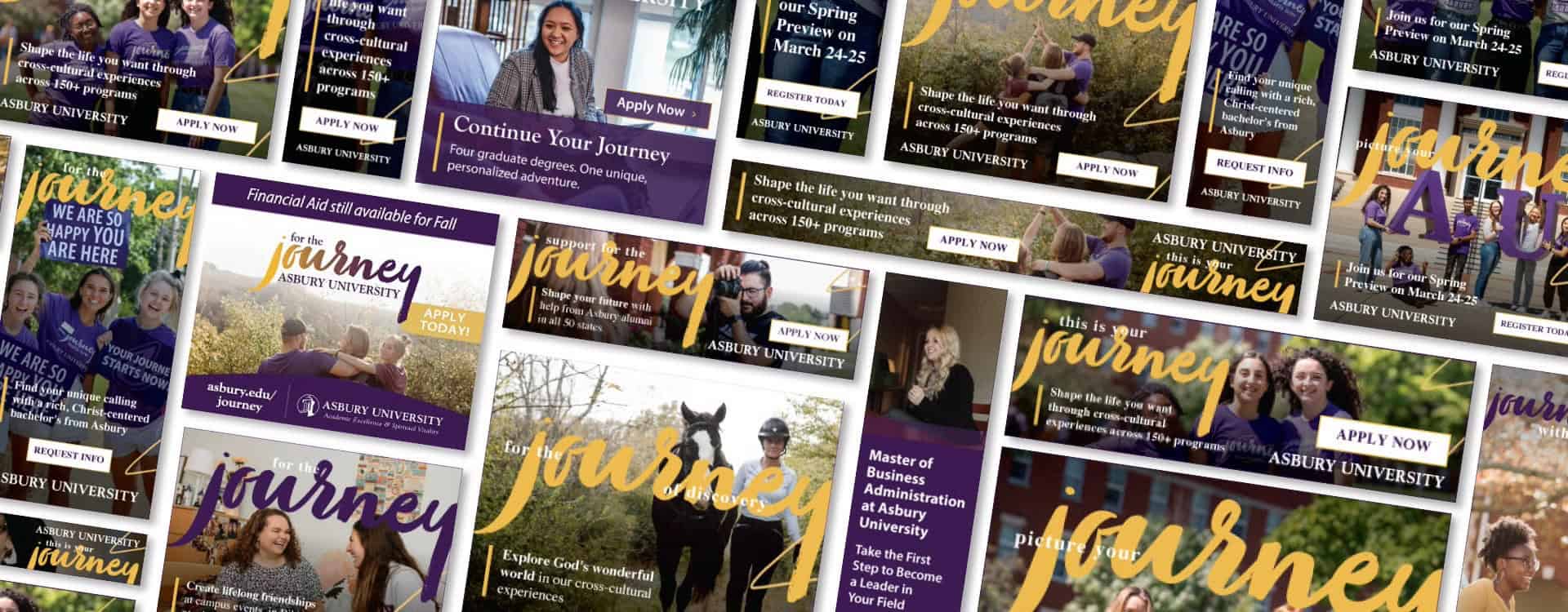 Carnegie’s partnership started with consensus-building brand strategy to build an understanding of the University’s core differentiators and how to express them. Carnegie has since partnered with Asbury for a variety of integrated solutions, including Audience Segmentation (Darts), Creative and Multimedia development, Digital Marketing, and more.