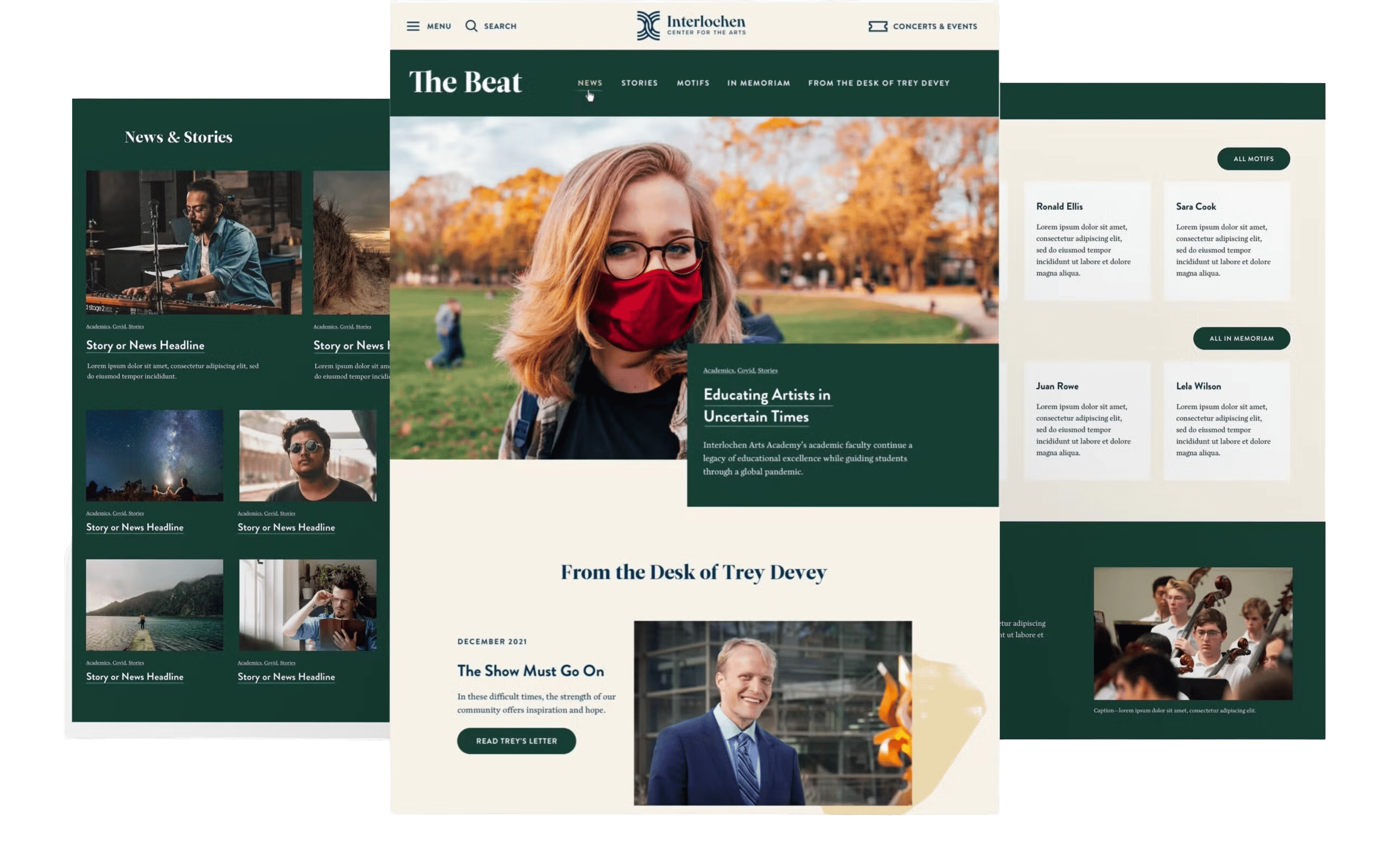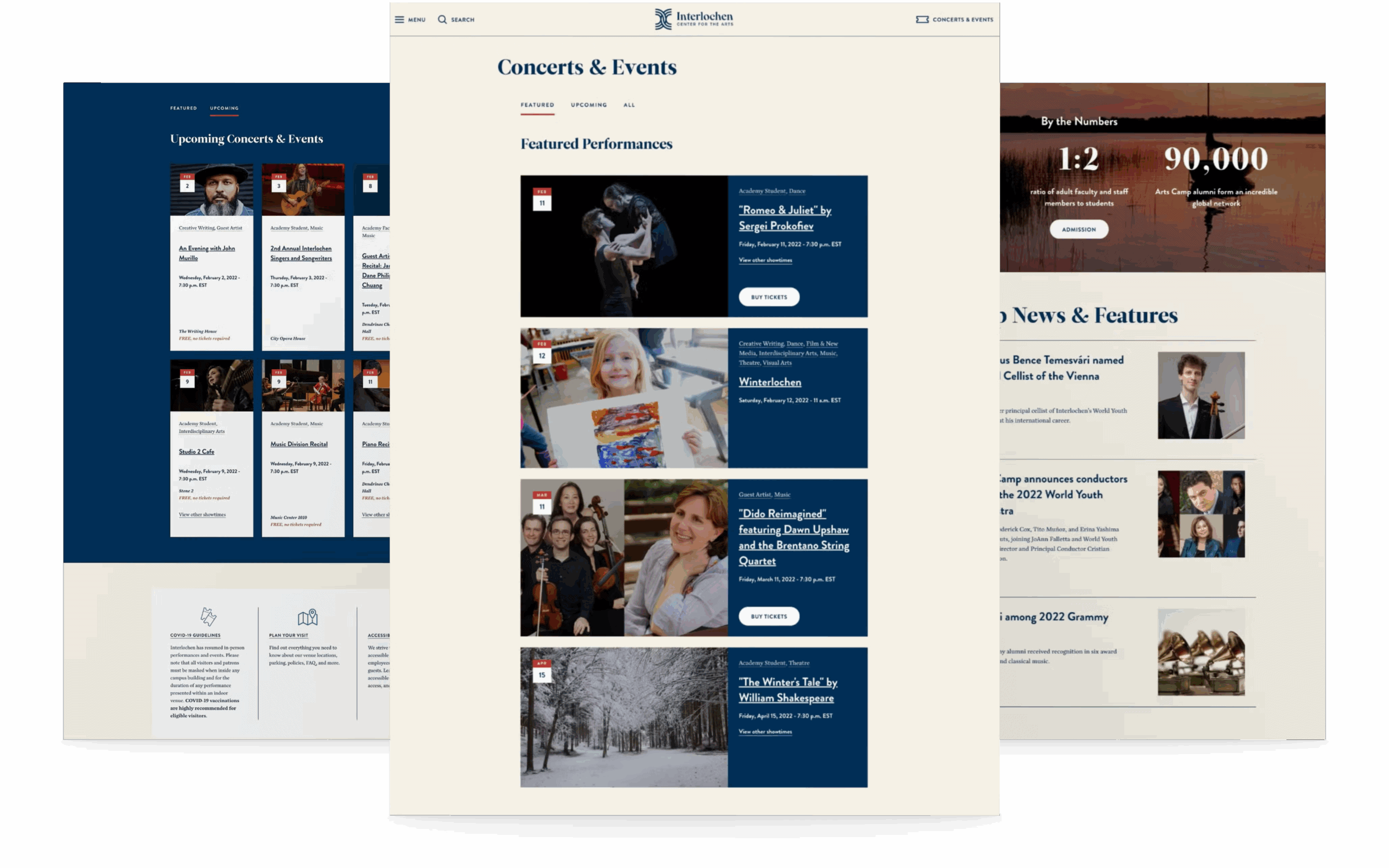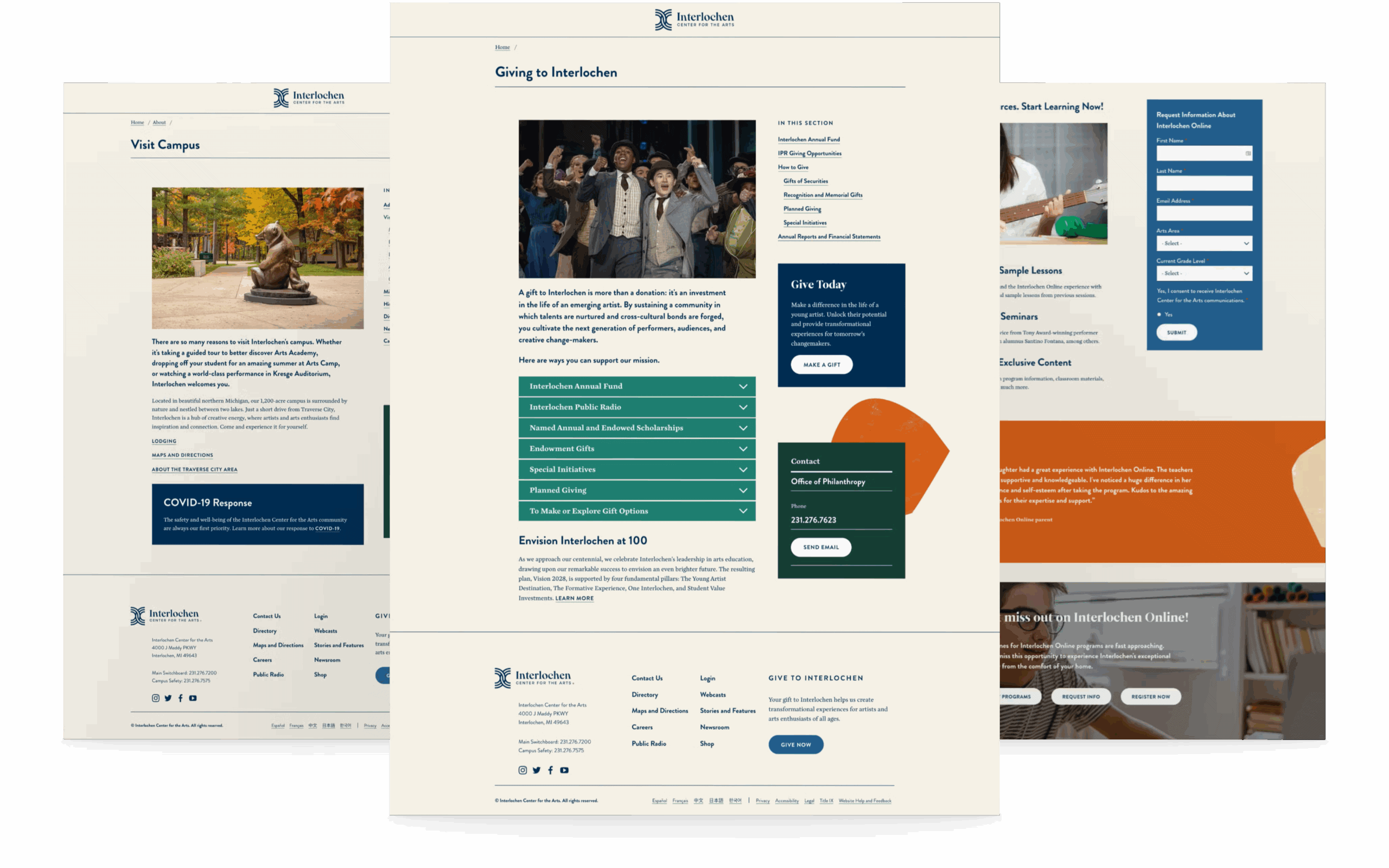 Interlochen Center for the Arts is one of the nation’s premier boarding arts high schools and summer arts camps. But website usability tests showed visitors felt frustrated and uninspired. The website was hard to navigate, and the pages did little to highlight the center’s unique creative energy and close-knit community. Interlochen needed a new web strategy to tell its complete story.