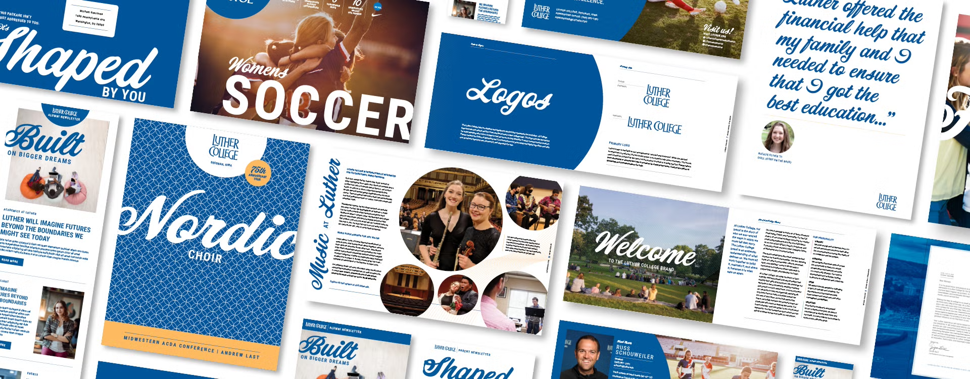 Using Luther’s existing brand strategy and applying Carnegie’s proprietary archetype system, Carnegie’s concept work with Luther began with in-depth discovery among campus stakeholders and the creation of two campaign concepts. The chosen campaign concept, “Shaped By You”, was implemented widely across campus, including Luther’s brand standards, the admissions packet, financial aid packet, alumni magazine template, and on-campus signage.